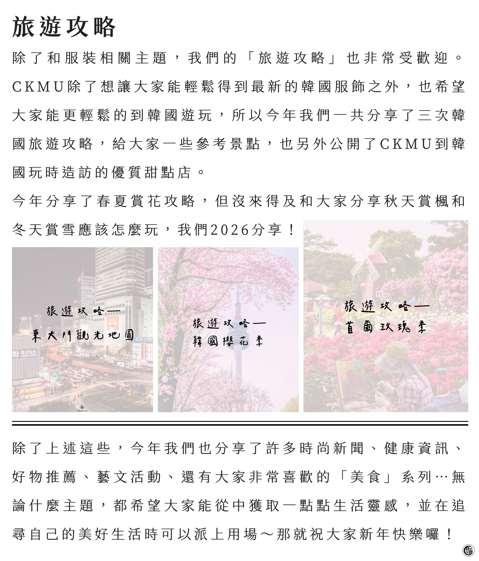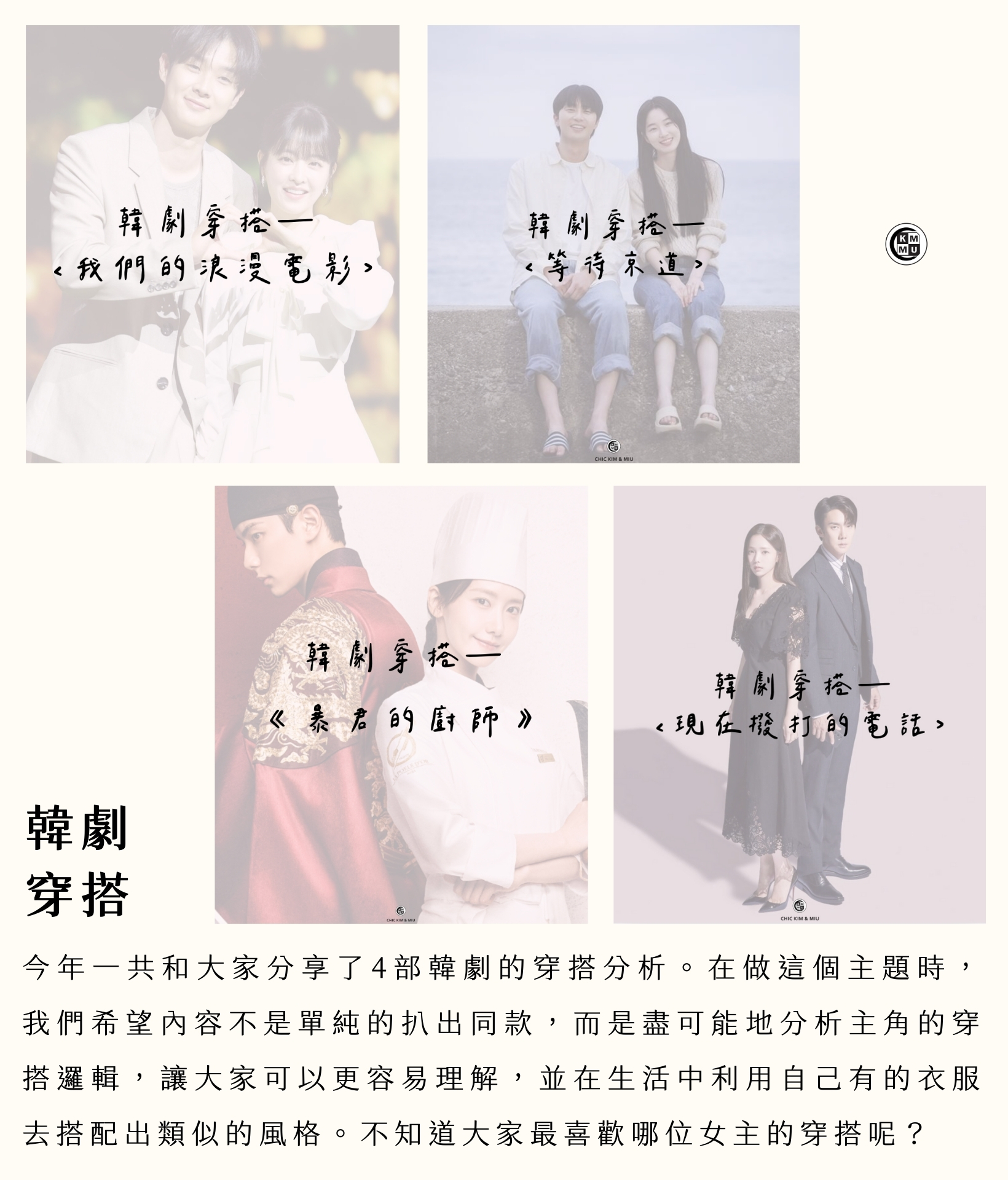 從穿搭筆記、韓劇穿搭、服裝解析到旅遊攻略