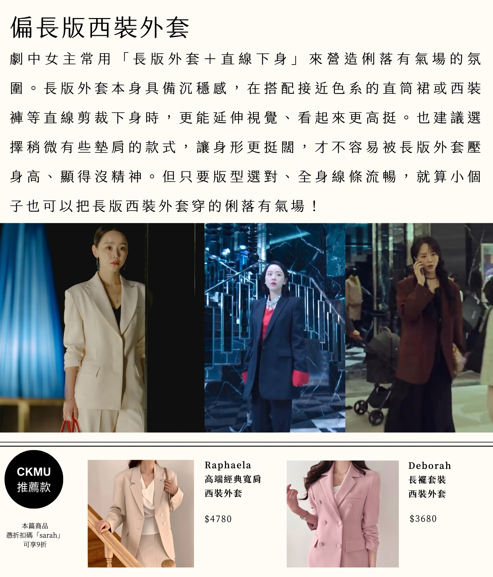 P.S. 文中的CKMU推薦款憑折扣碼 「sarah」 享九折!