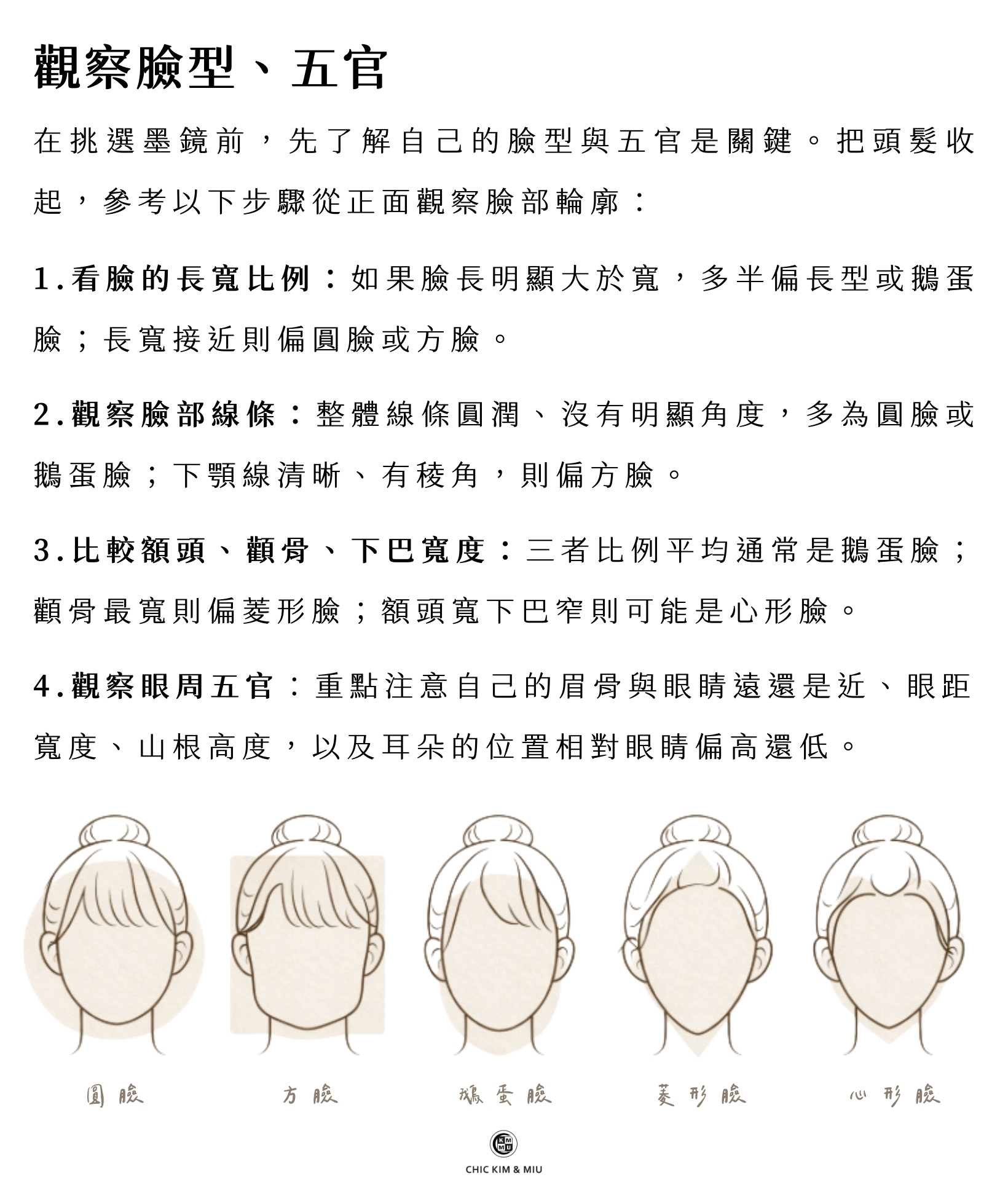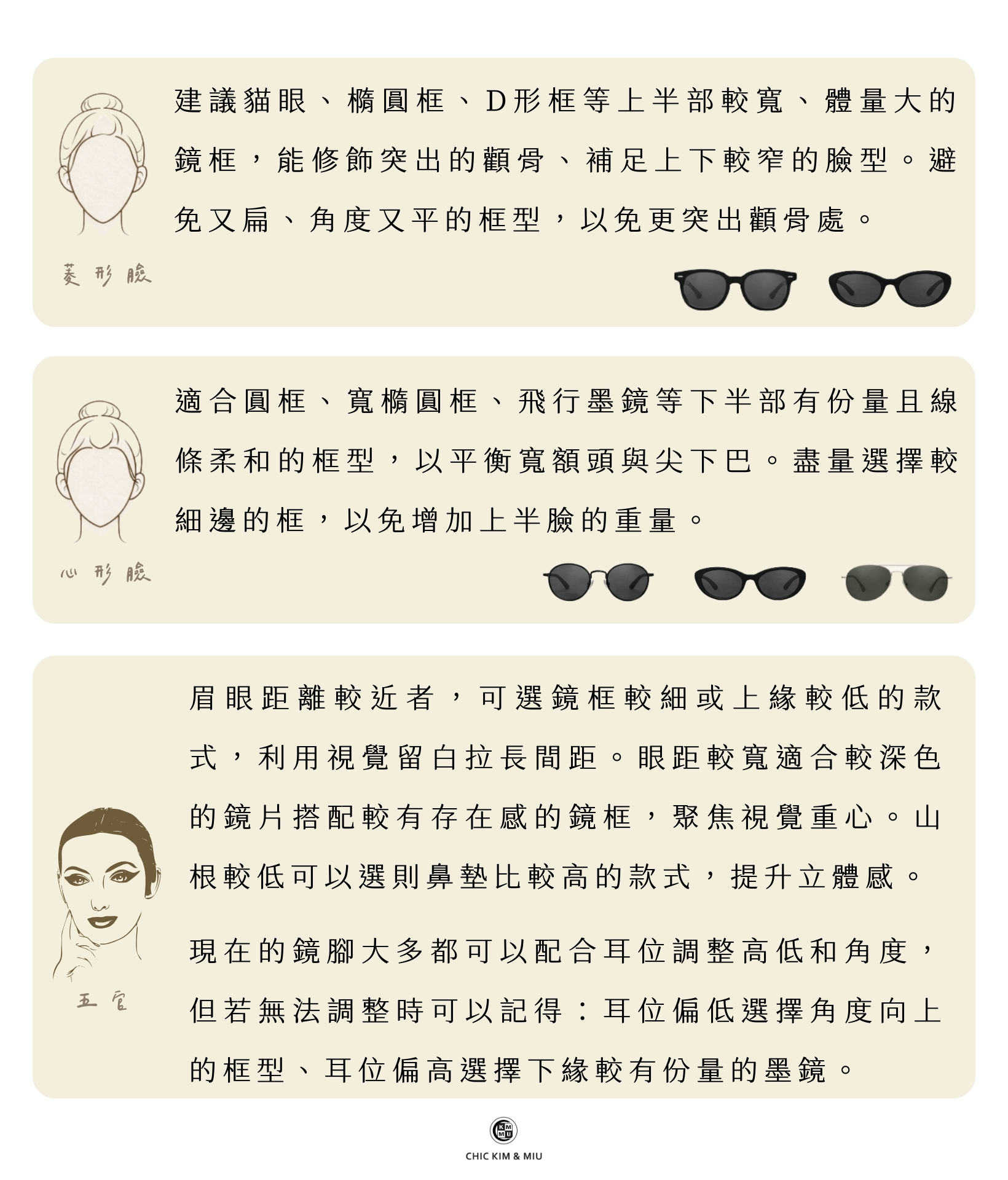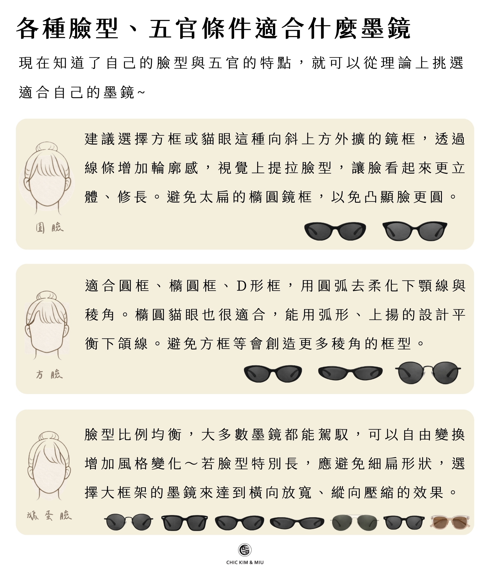 所以這次整理了很多挑選墨鏡框型時可以注意的地方
