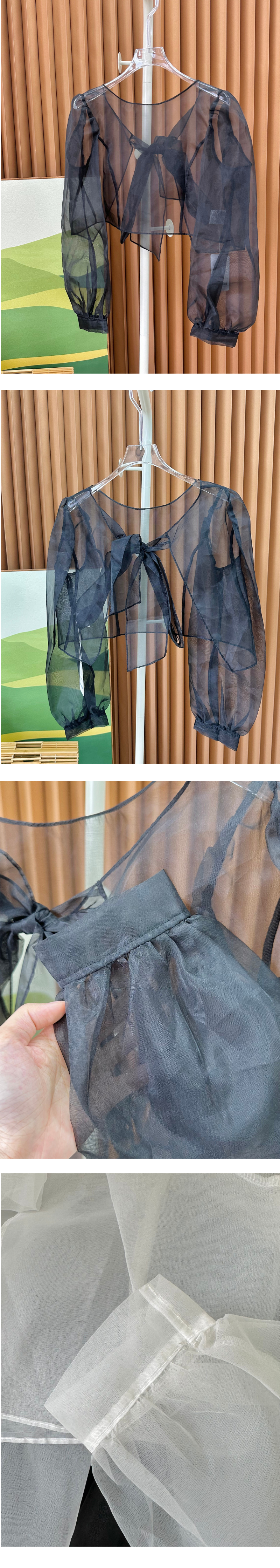 [現貨] 緞帶透膚罩衫 [ 2色 / Free ]