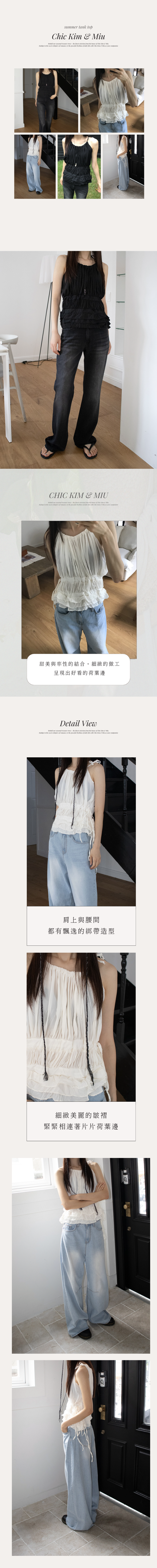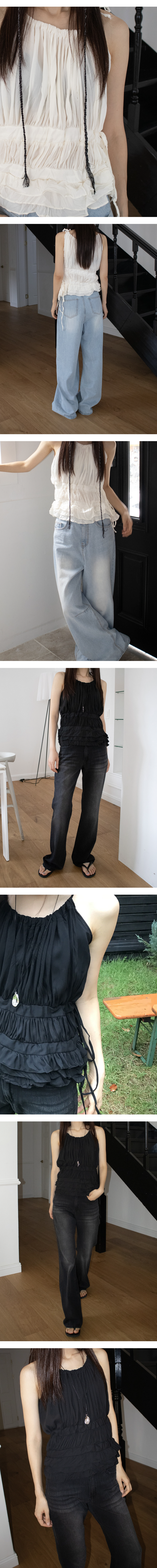 [現貨] Willa Halter Pleated Layered Ruffle Tank Top [ 2 colors / Free ]