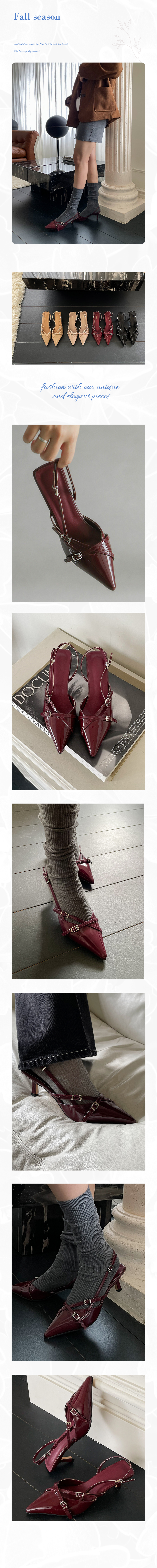 Iris尖頭扣帶露跟高跟鞋 [ 4色 / 230-250 ]