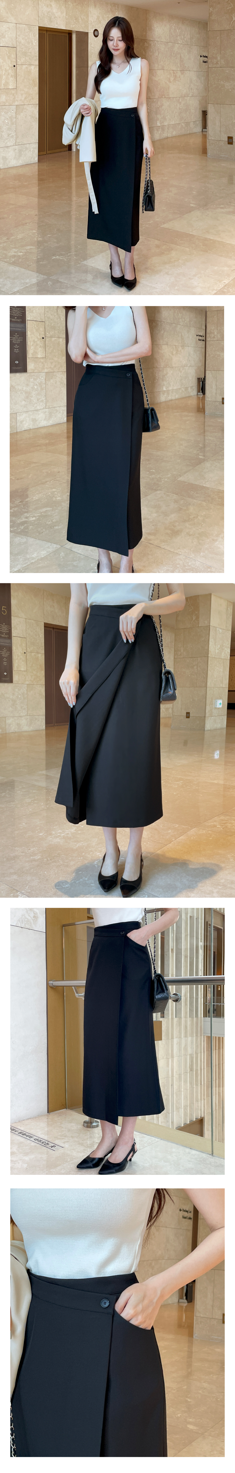 Luna High-Waist Side-Button Wrap Skirt [ 3色 / S,M,L]
