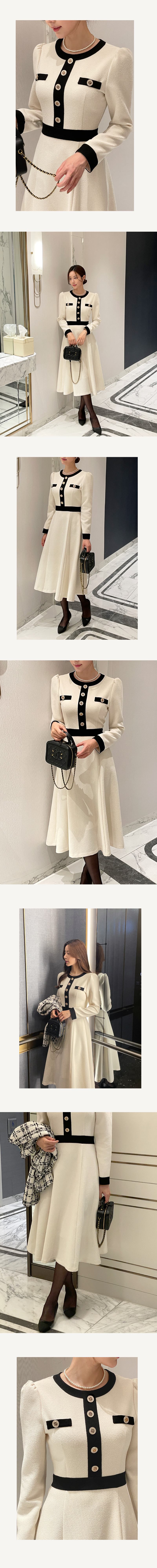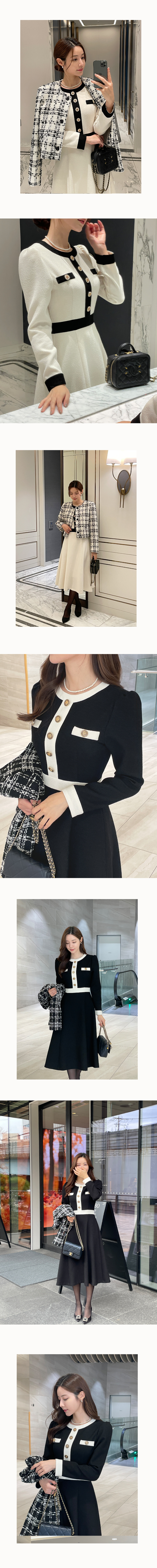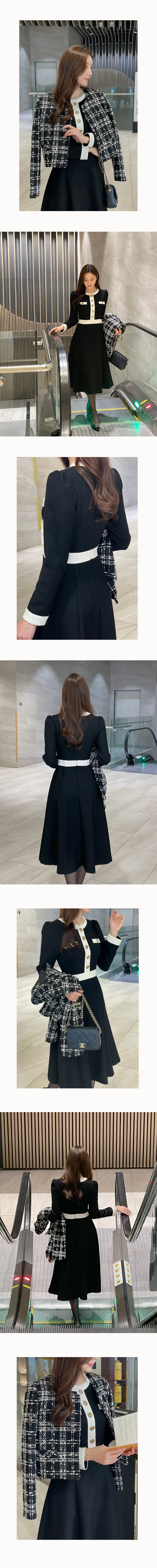 [現貨] Vanessa 氣質花呢拚色洋裝 [ 2色 / S,M,L ]