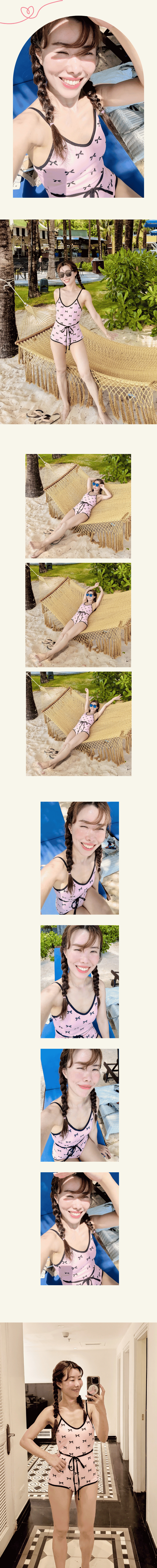 滿版夢幻蝴蝶結印花造型泳衣