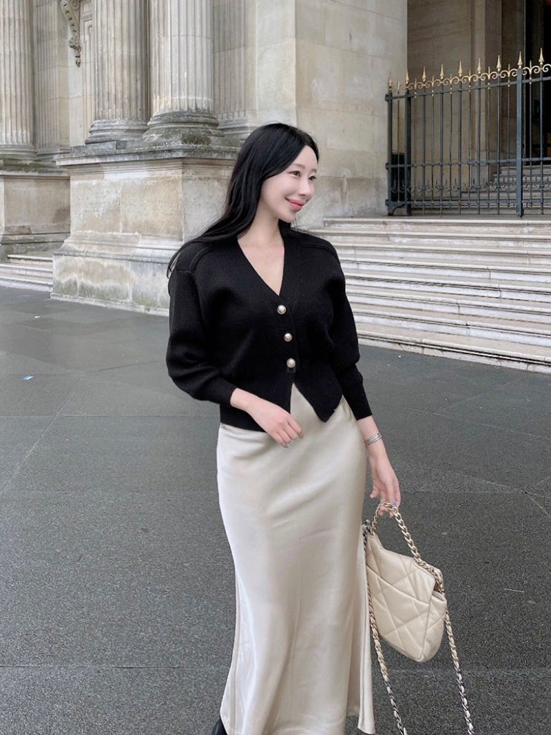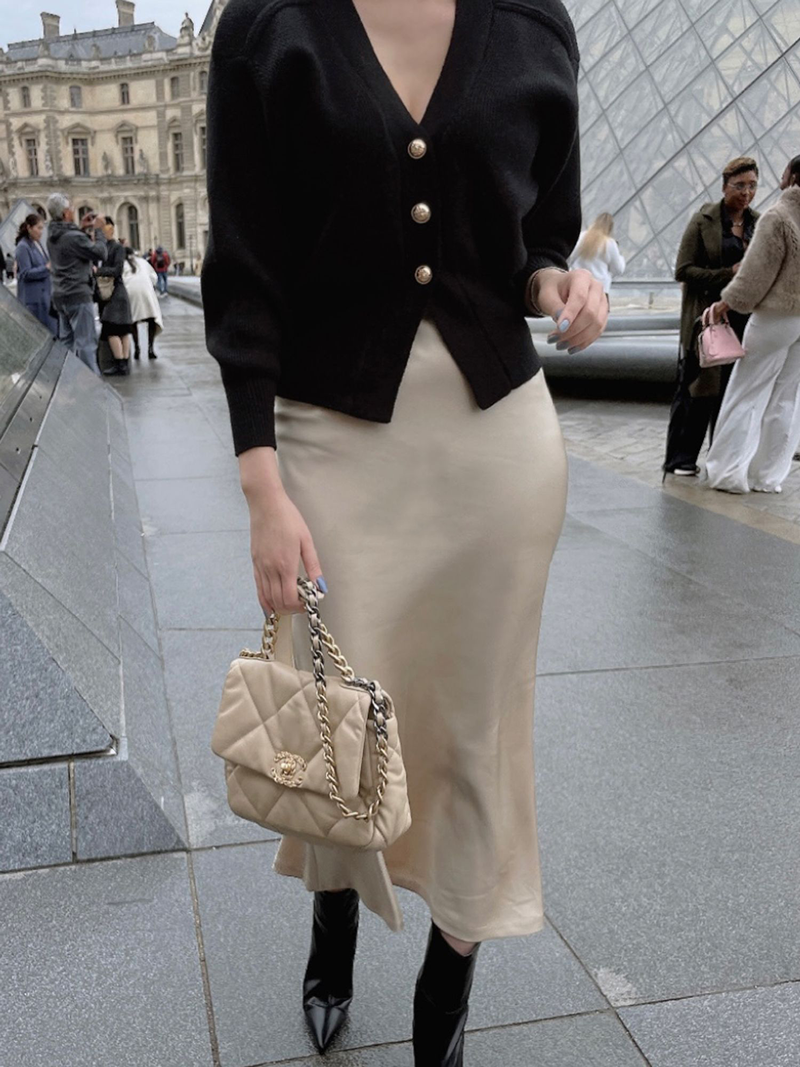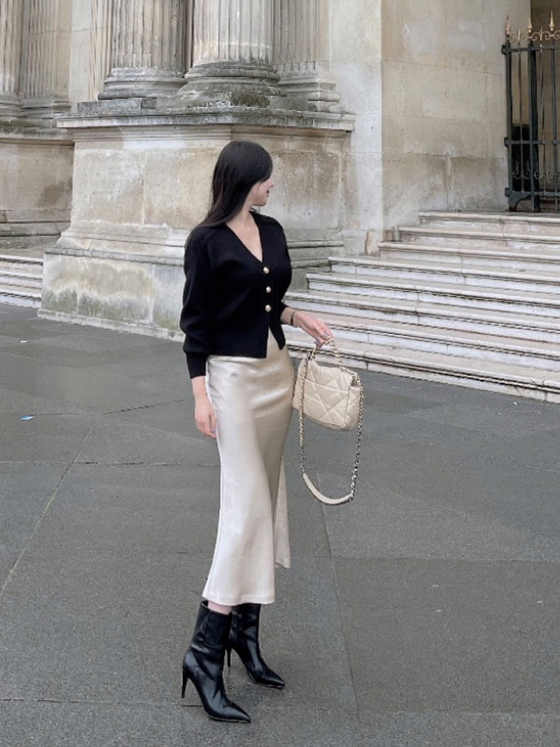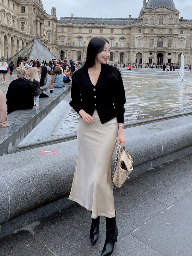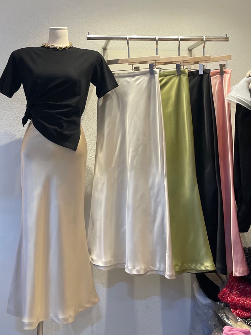 [現貨] 氣質絲綢魚尾長裙(米色)