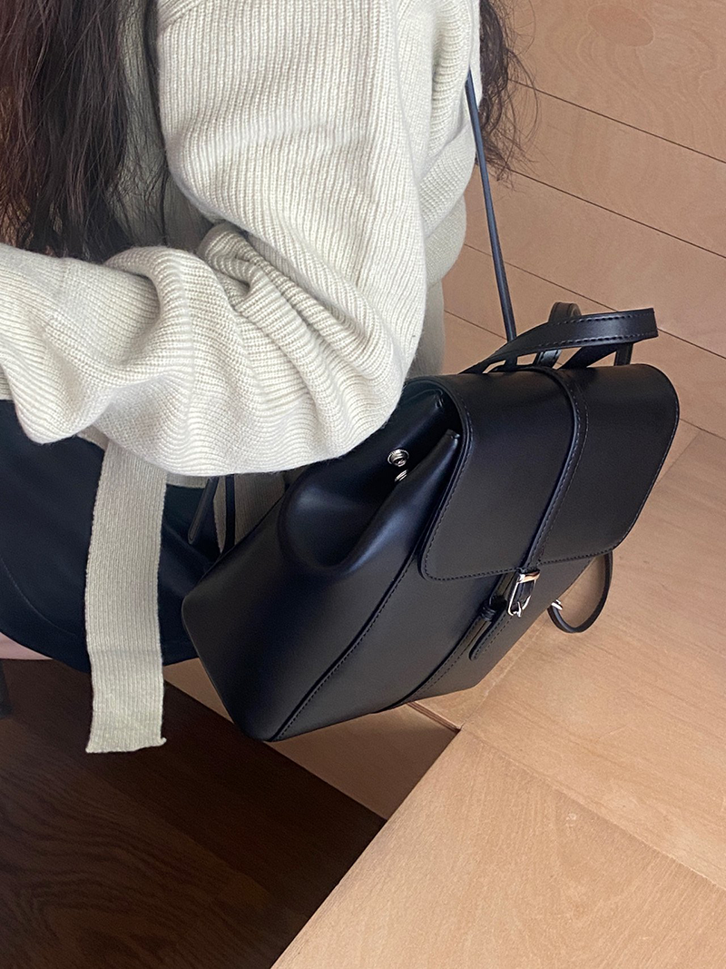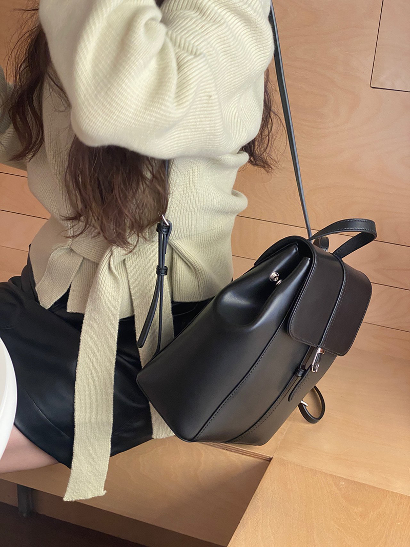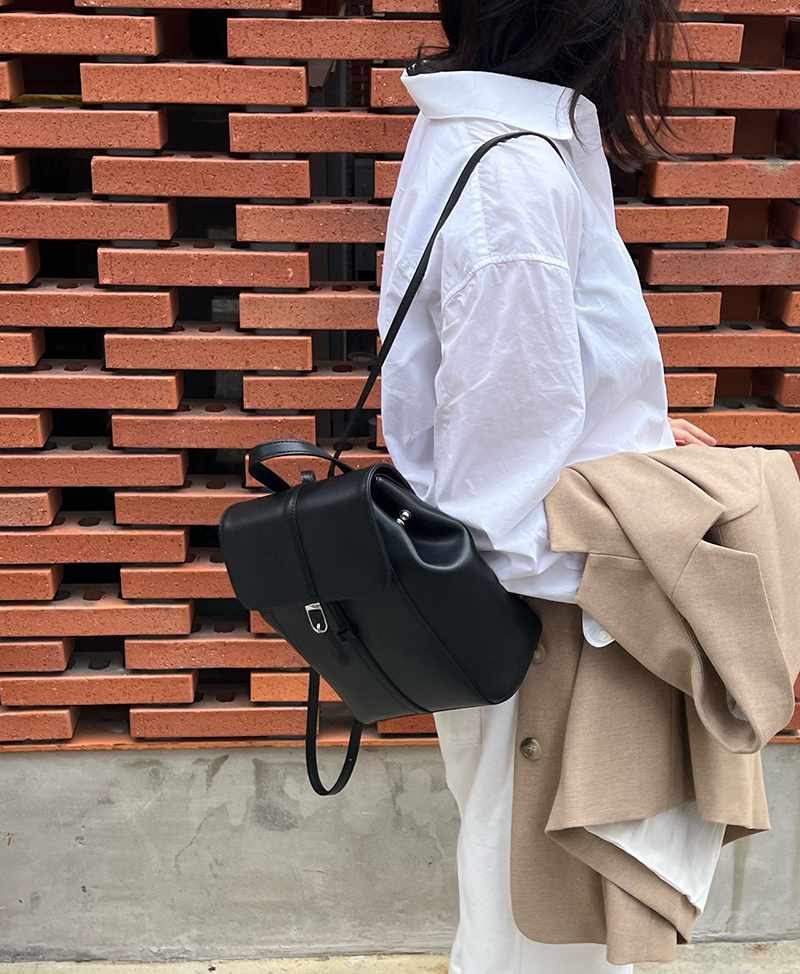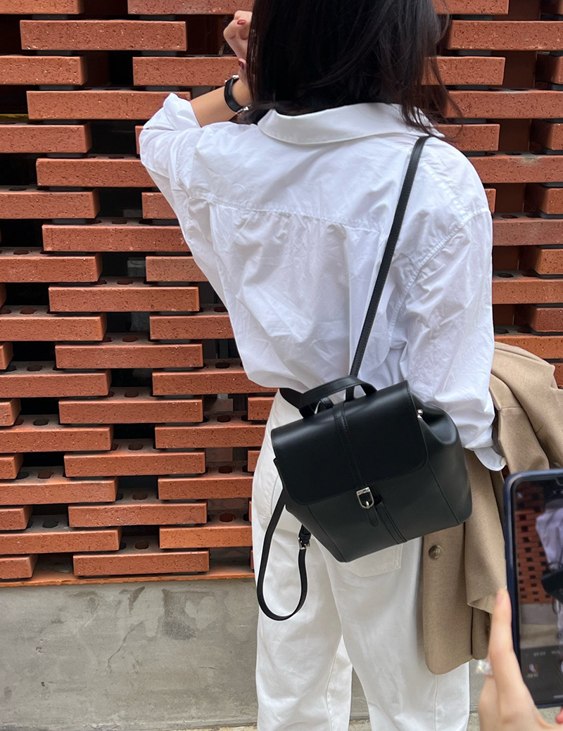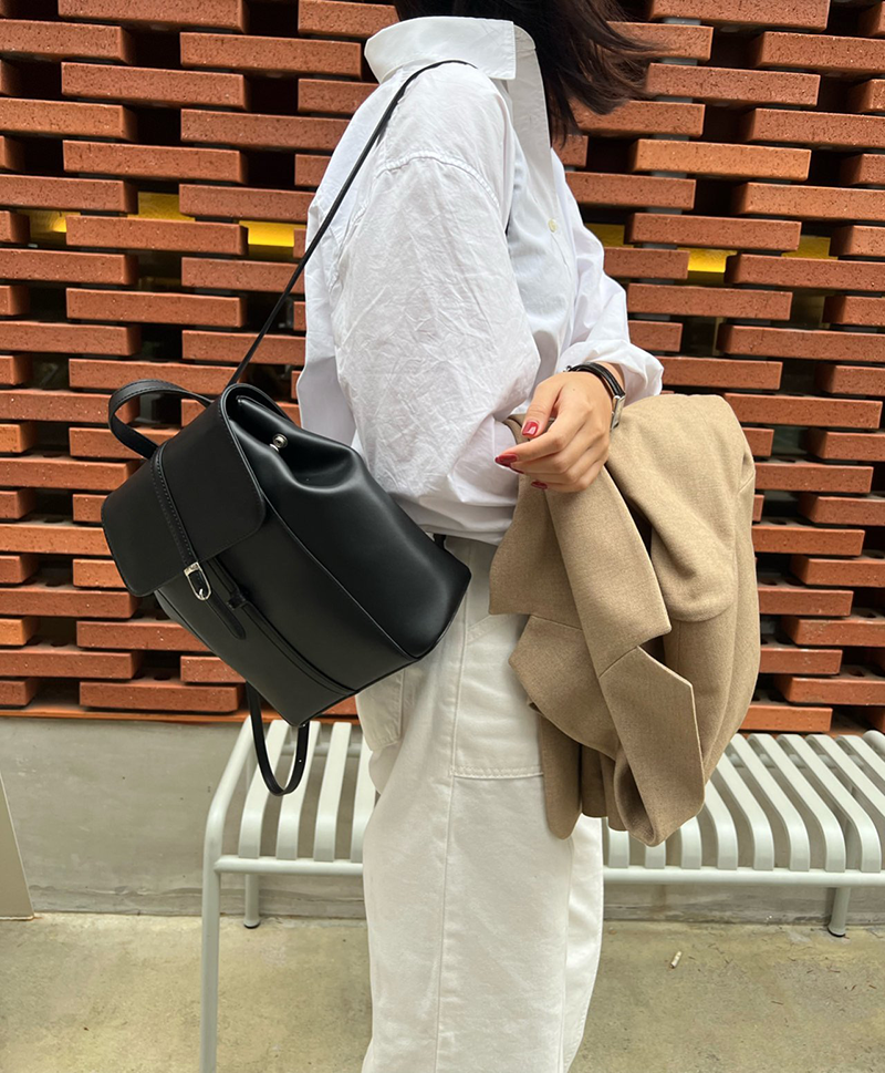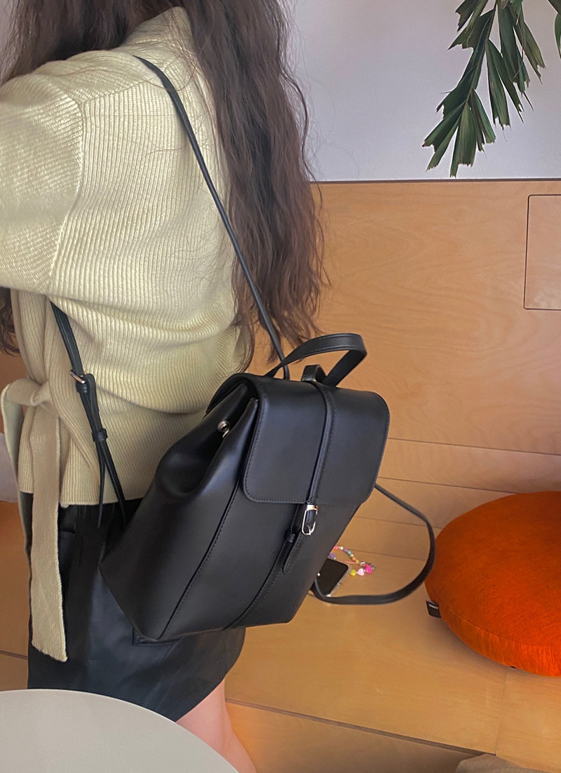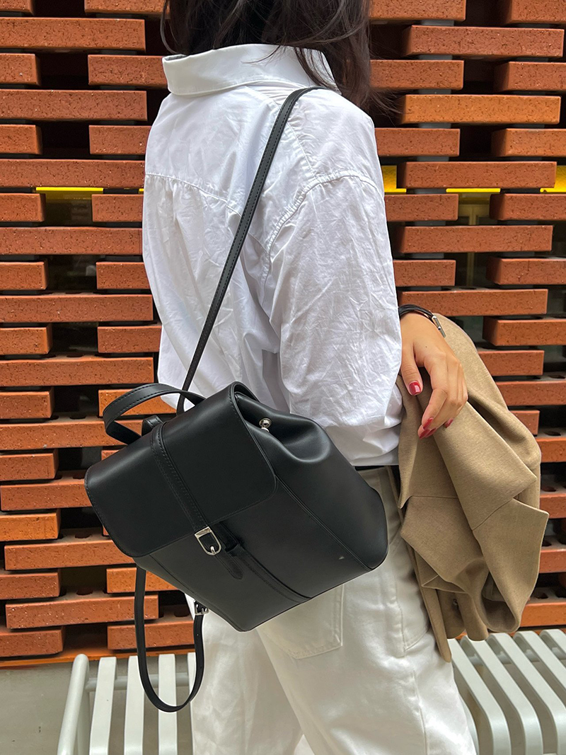 雙肩皮革後背包(黑色)