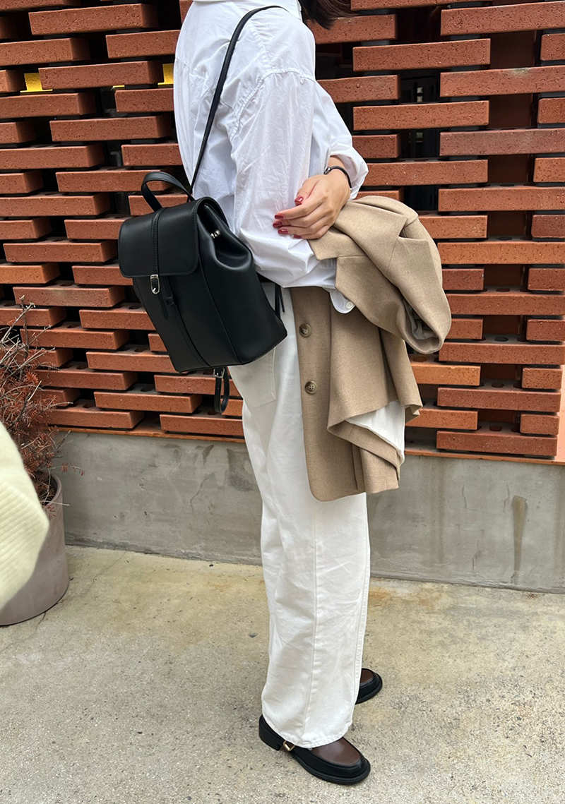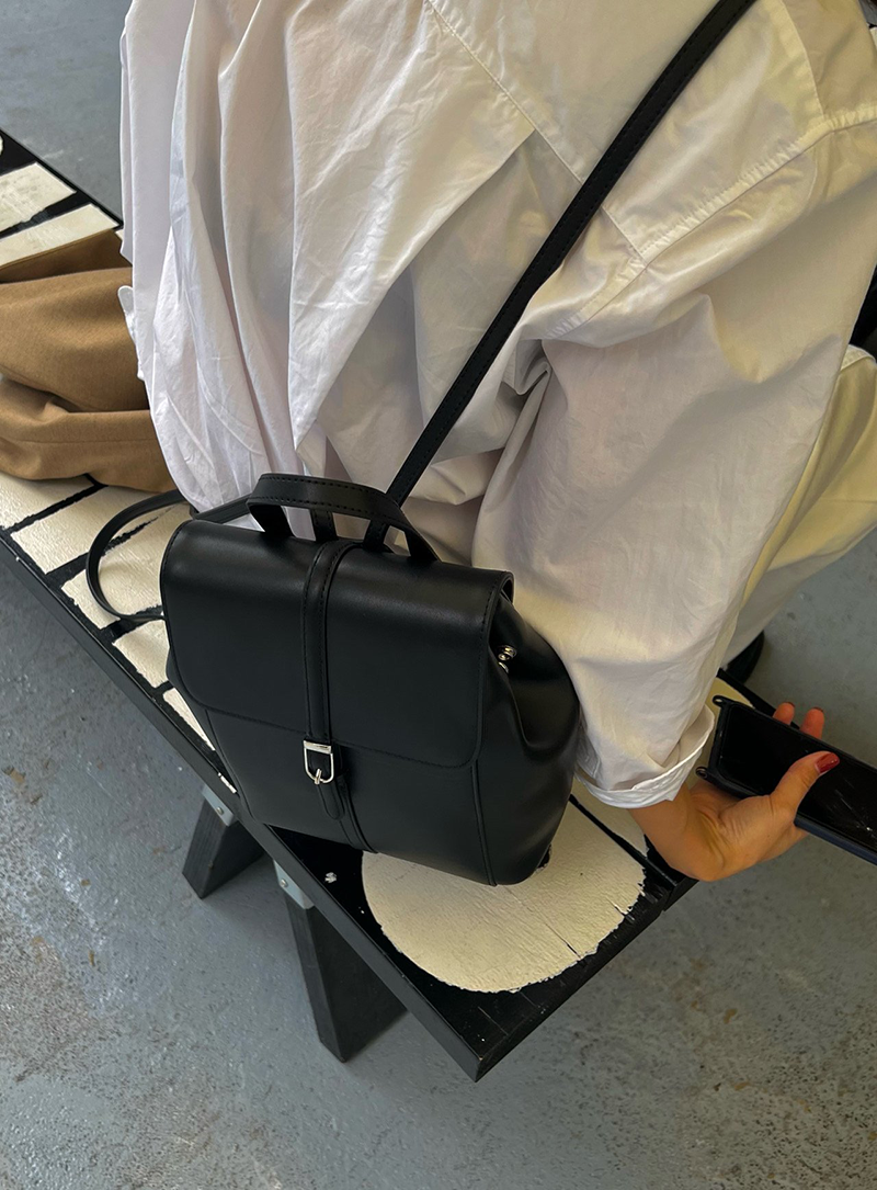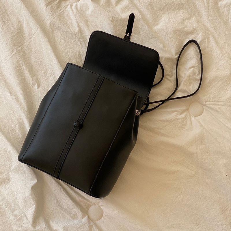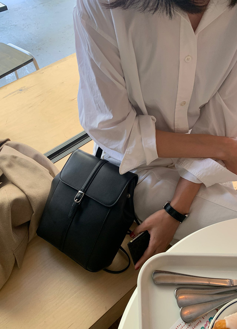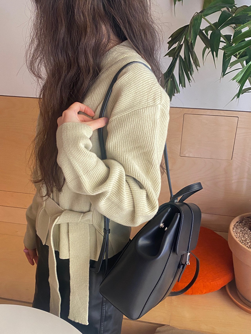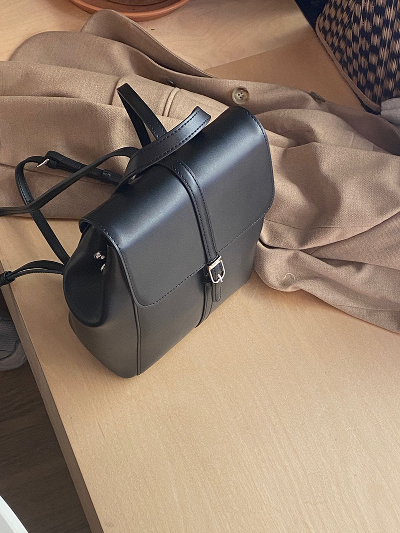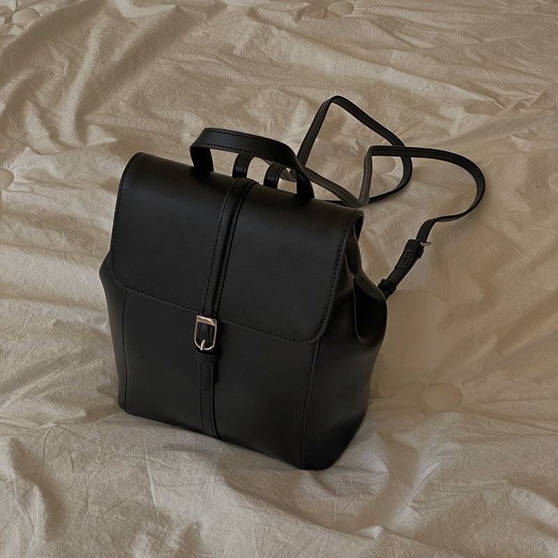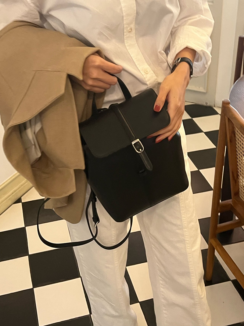 雙肩皮革後背包(黑色)