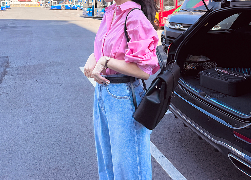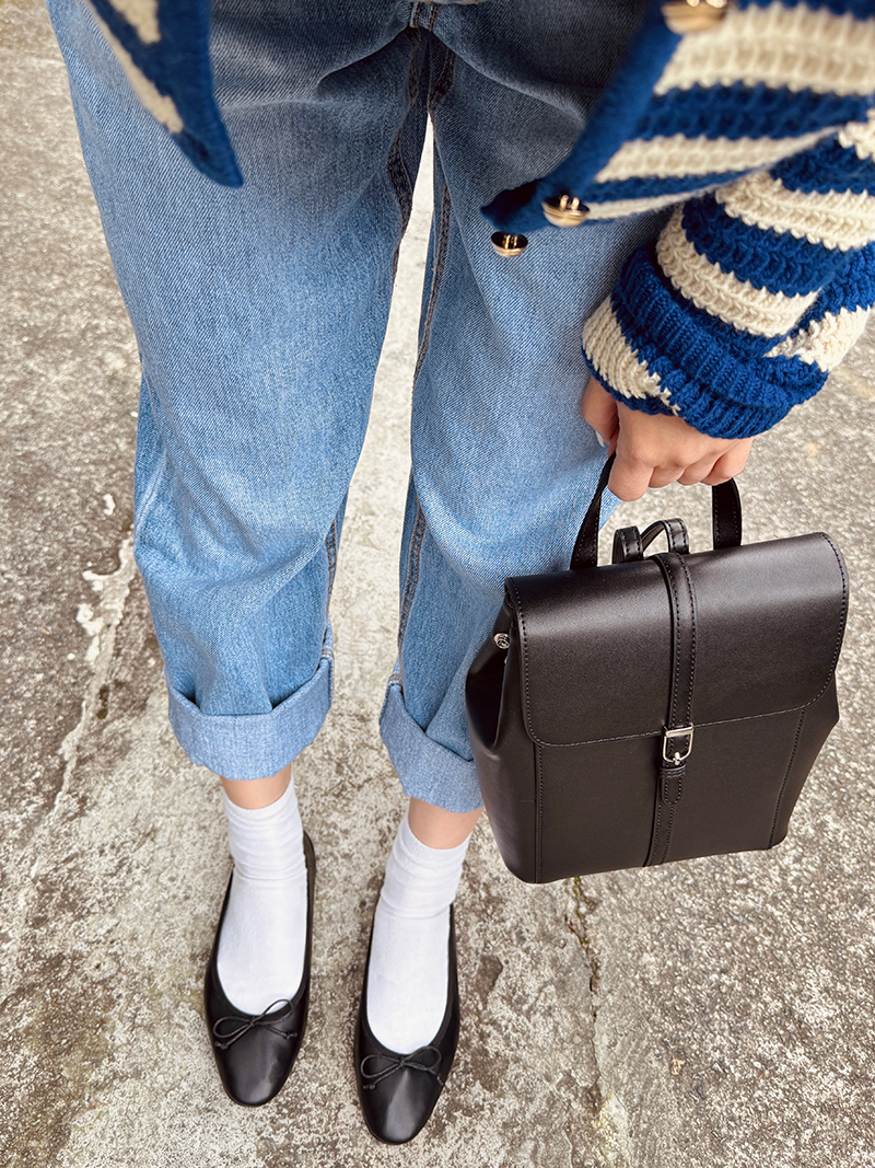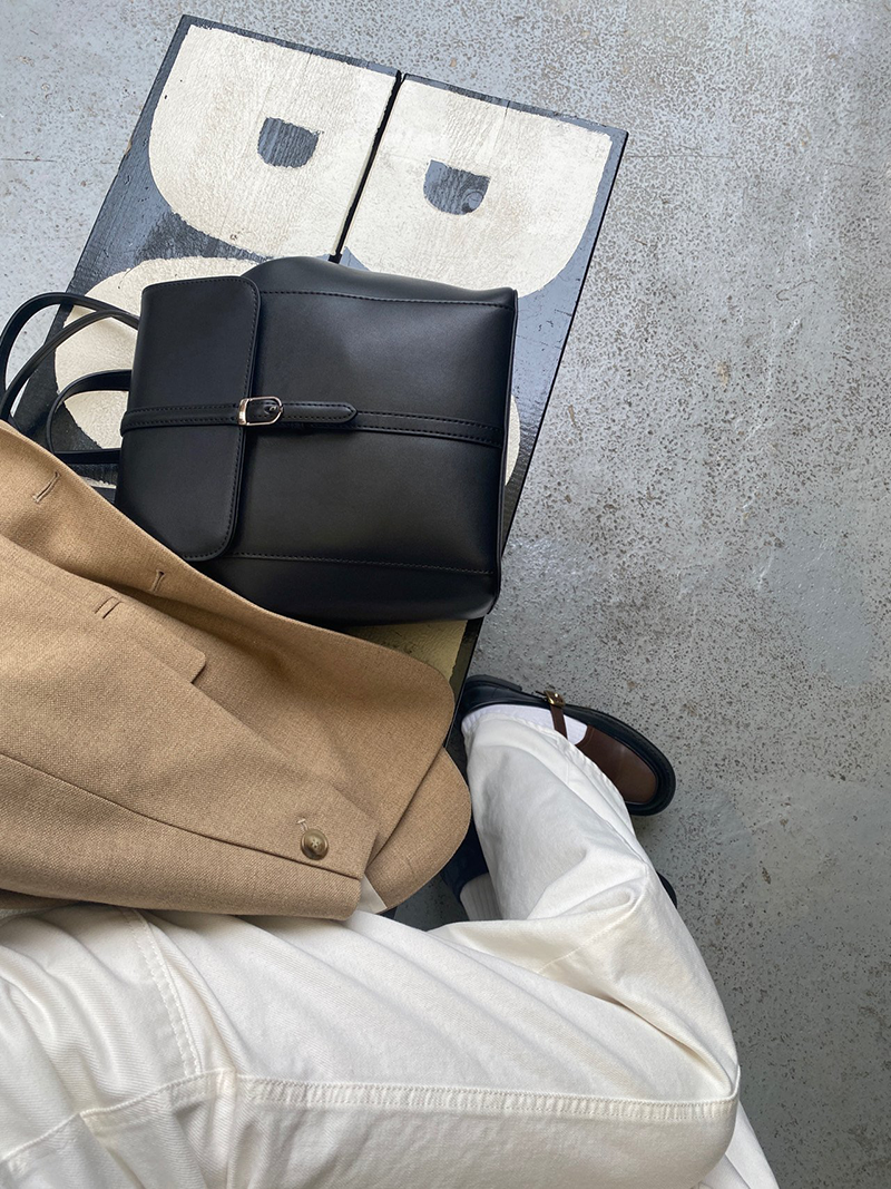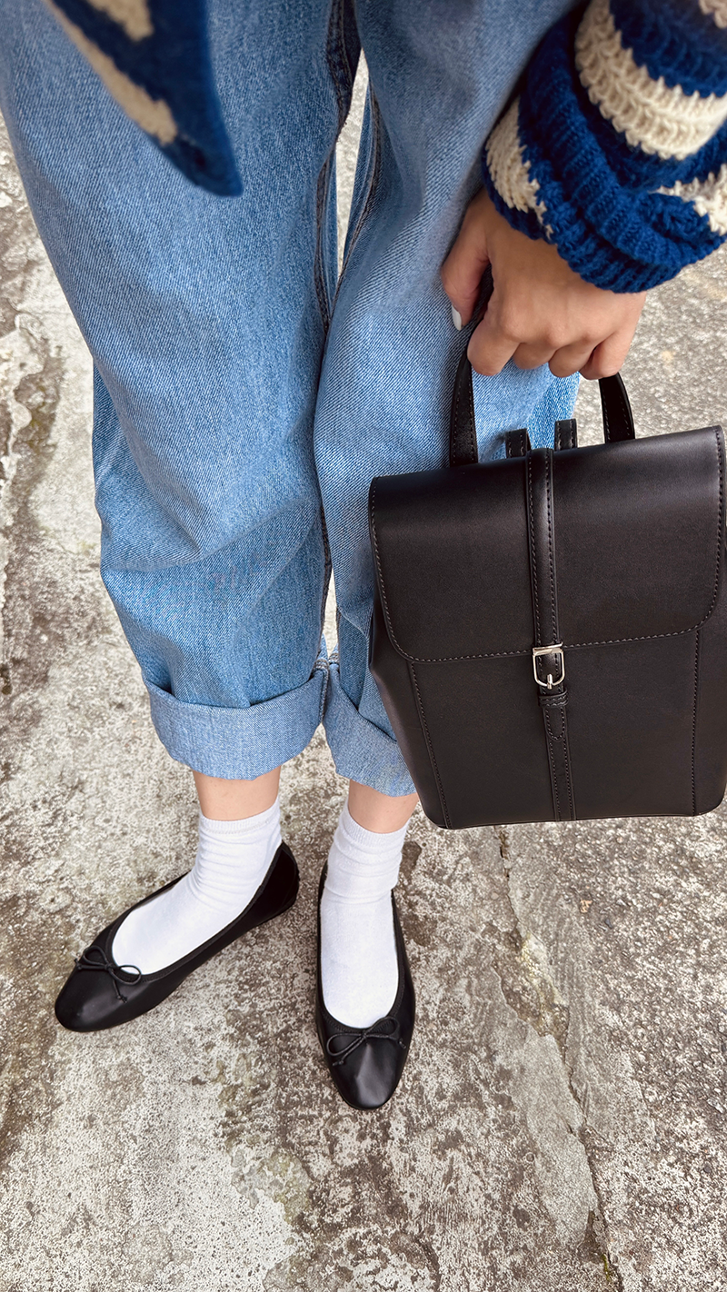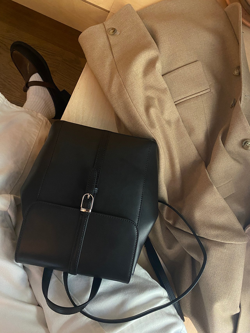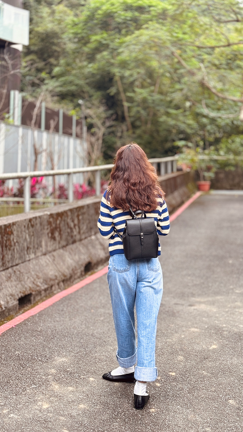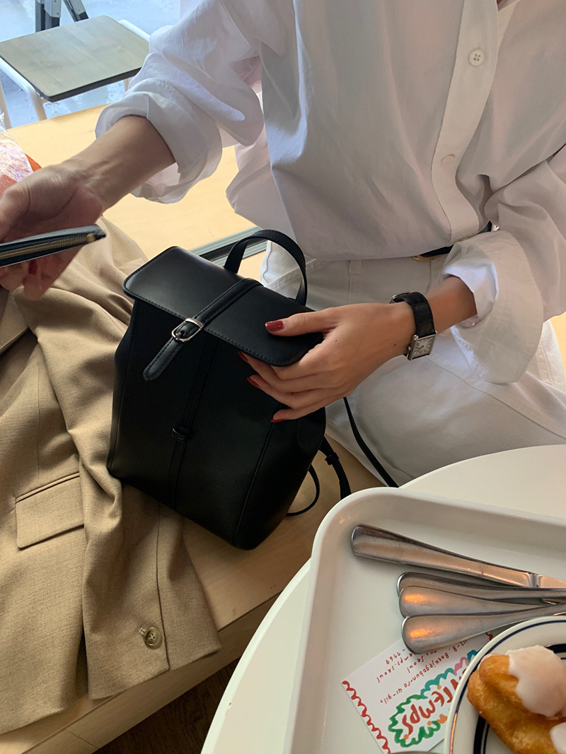 雙肩皮革後背包(黑色)