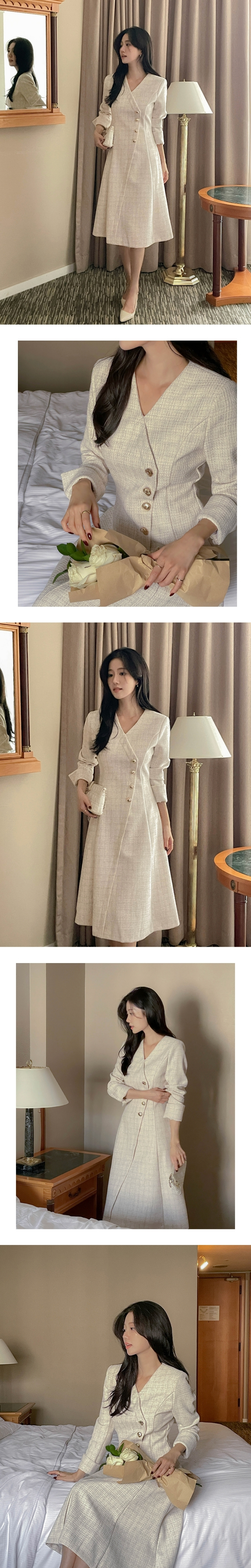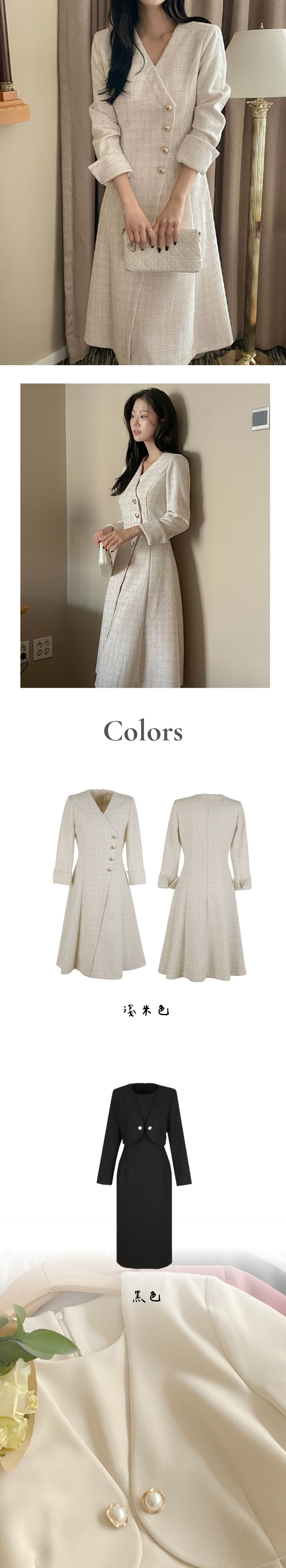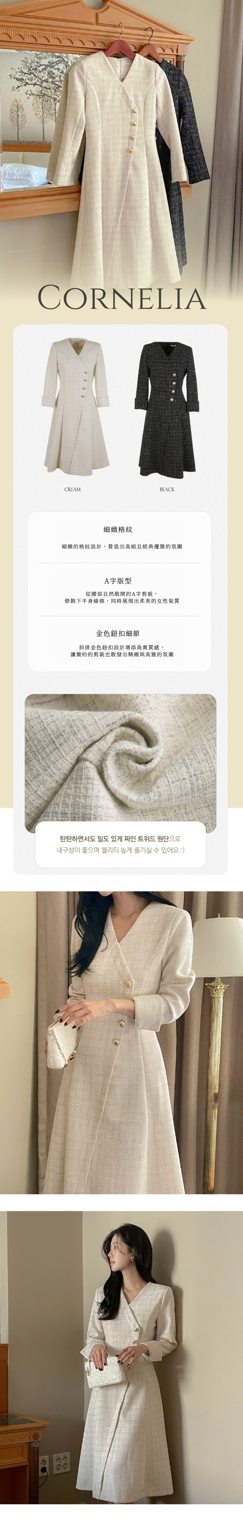 Cornelia 斜排釦V領A字長洋裝 [ 2色 / S,M ]