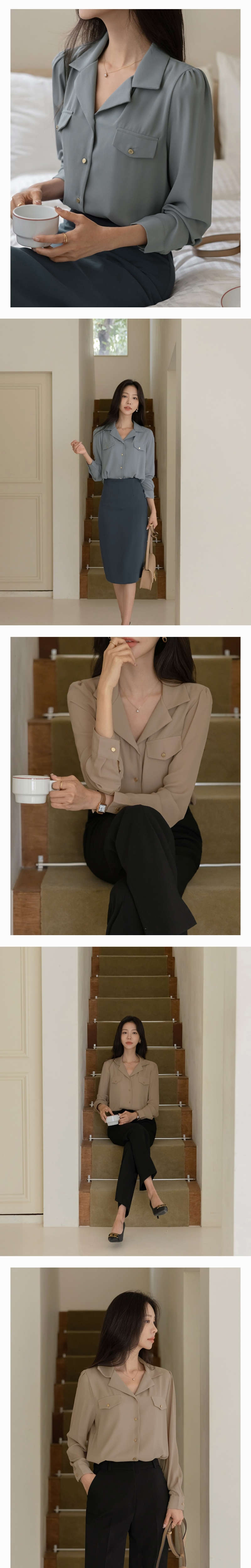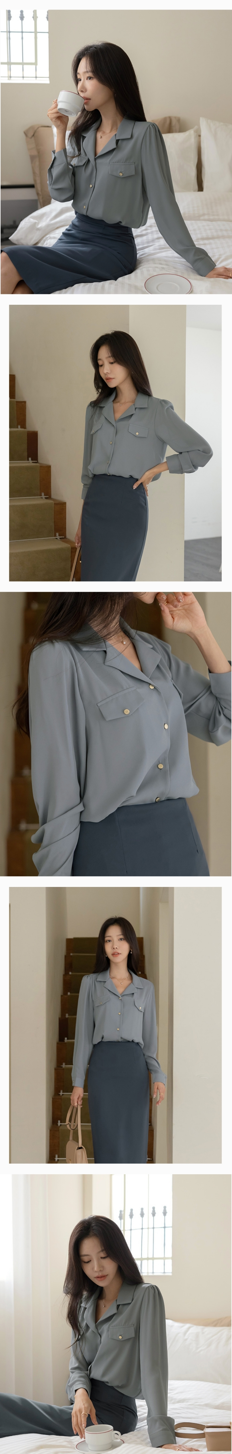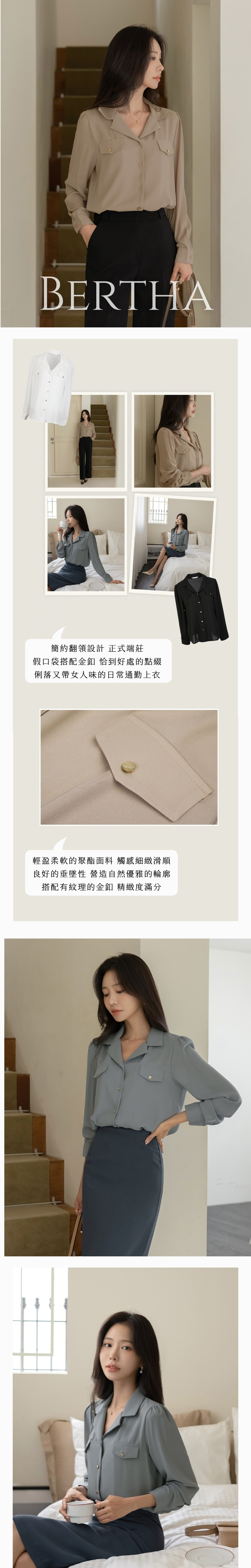 Bertha 都會金釦翻領襯衫 [ 4色 / Free ]