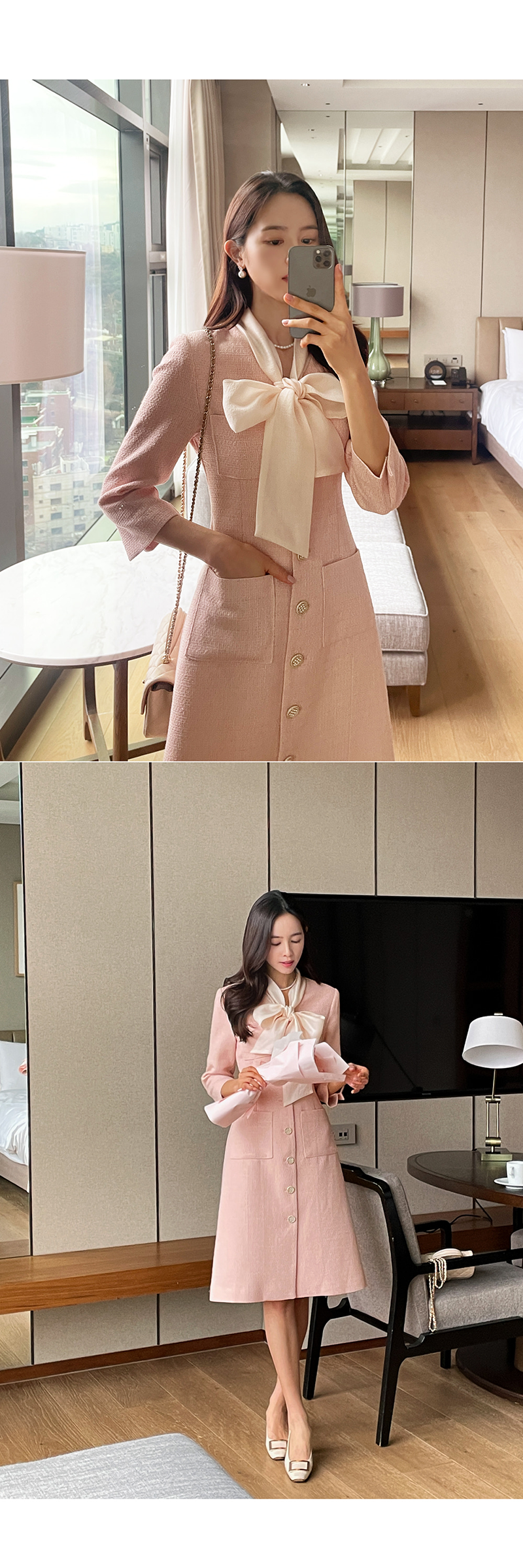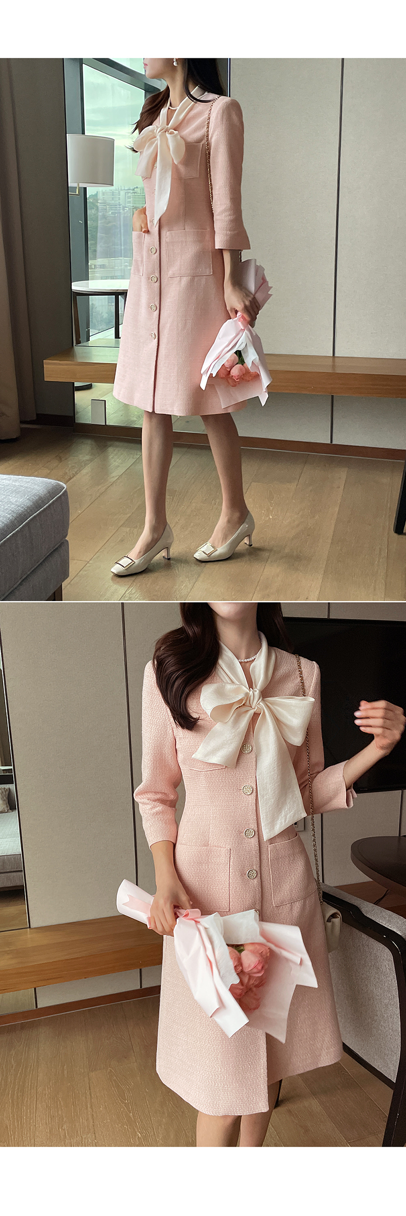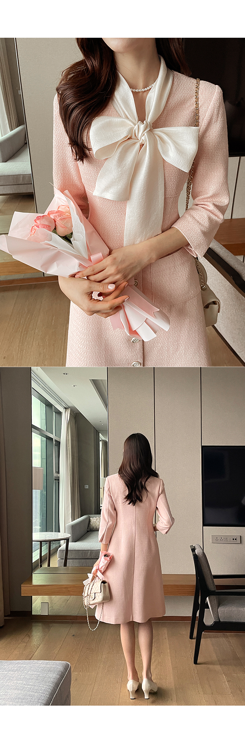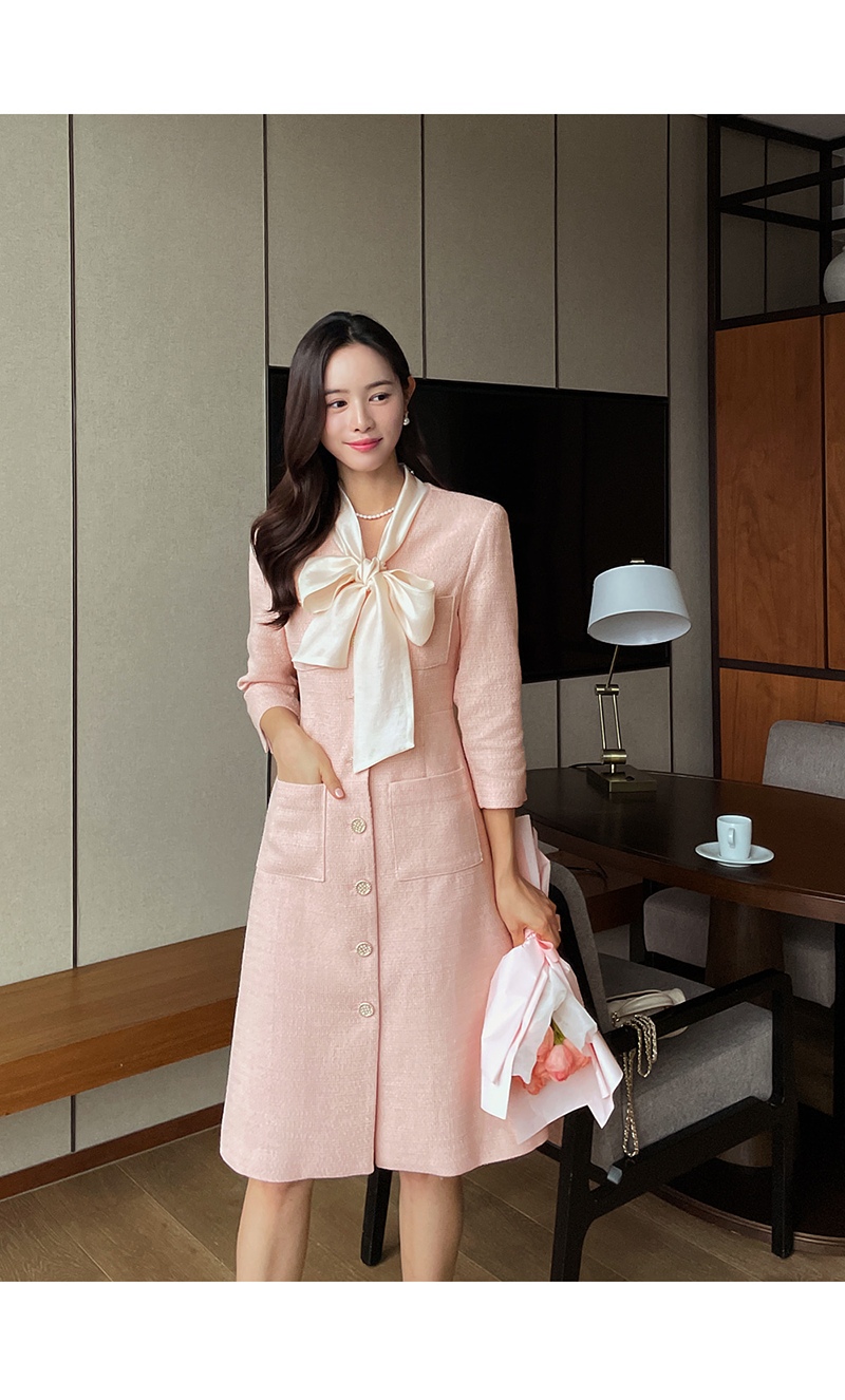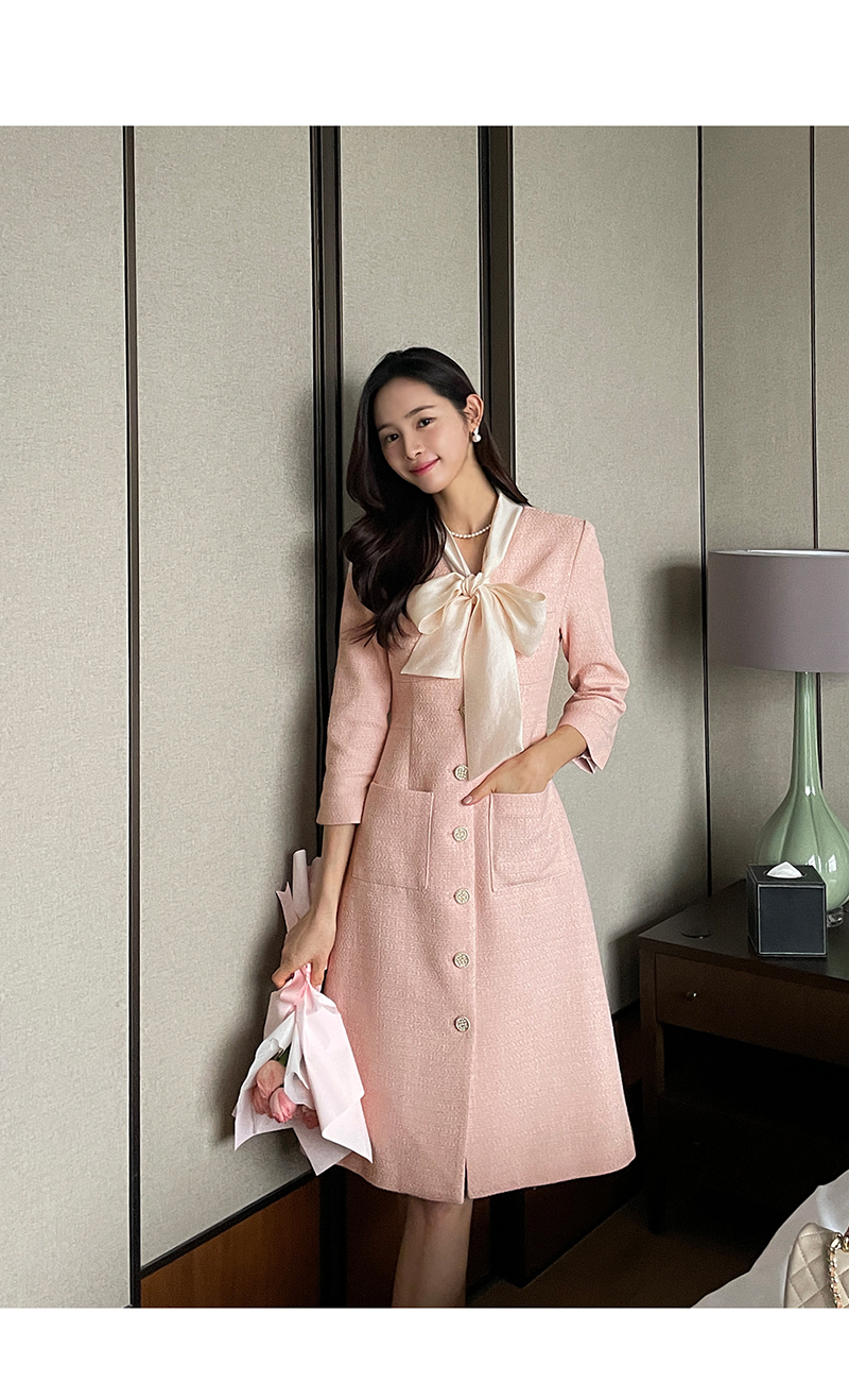 [現貨]Melling優雅絲巾洋裝(粉紅色) [ L ]