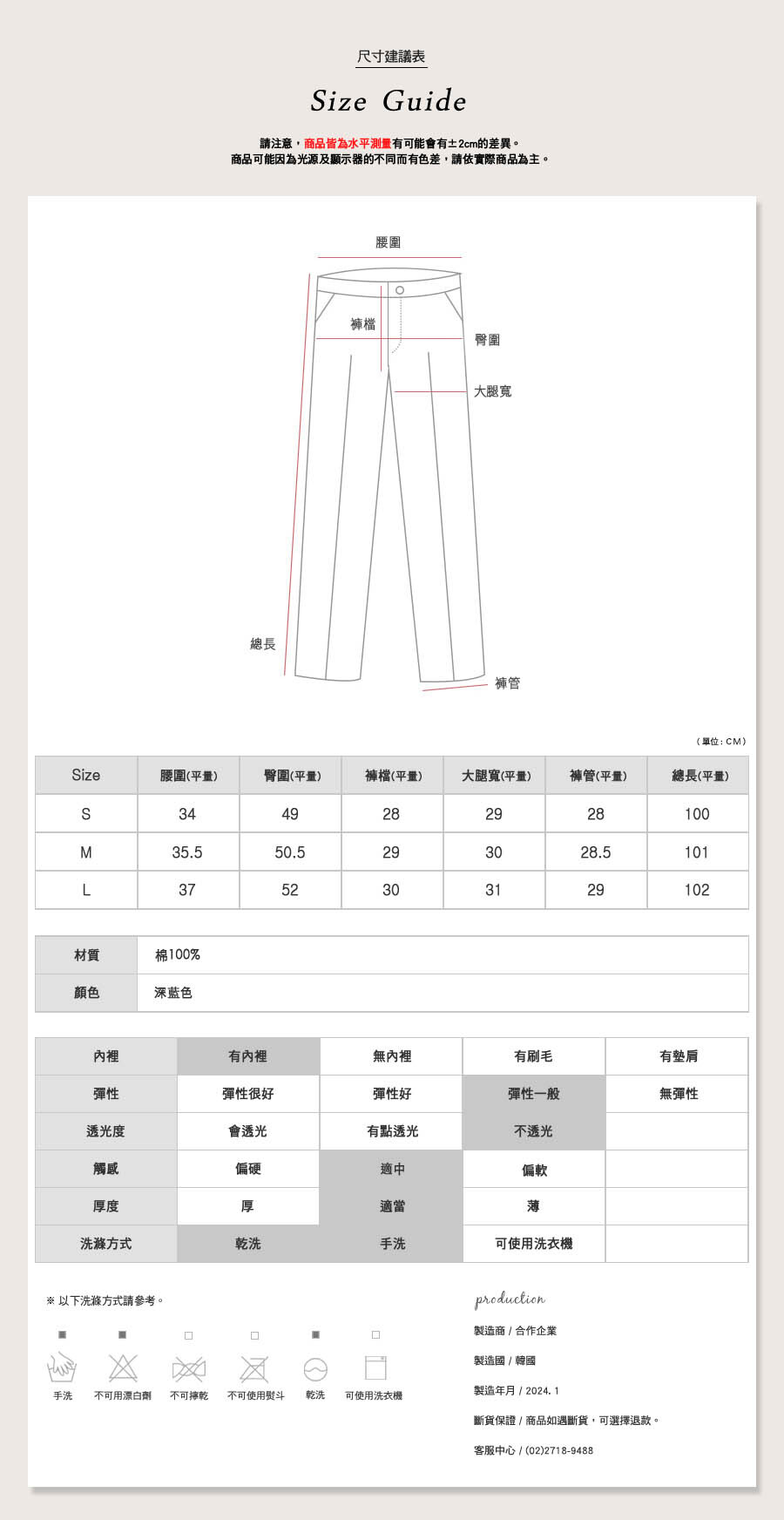 Nyla 修身中線直筒牛仔褲 [ 深藍色 / S,M,L,XL ]