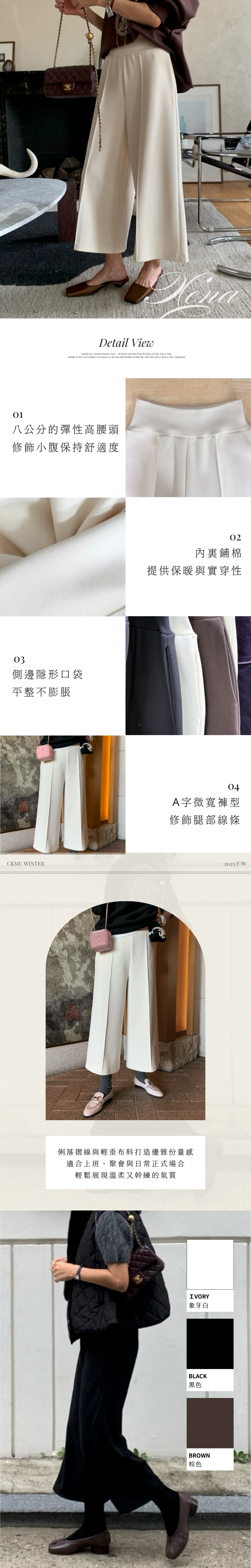 八分寬褲版型展現俐落知性風格